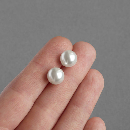 10mm White Pearl Stud Earrings - Everyday, Chunky, White Glass Pearl Studs