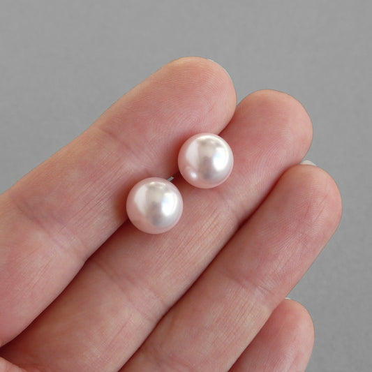 10mm Blush Pink Pearl Studs - Large Baby Pink Stud Earrings