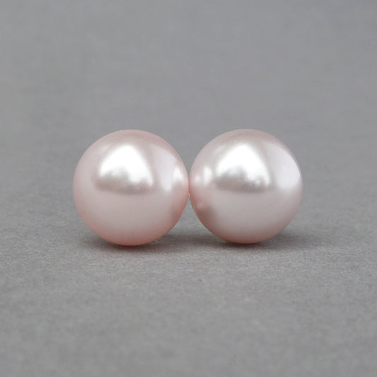 10mm Blush Pink Pearl Studs - Large Baby Pink Stud Earrings