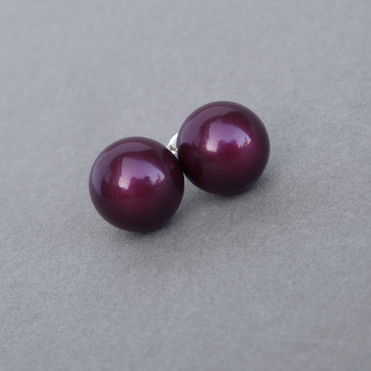 12mm Chunky Plum Pearl Studs - Chunky Berry Stud Earrings