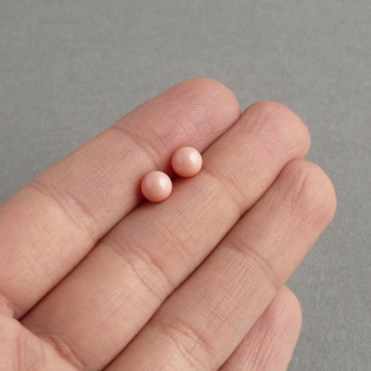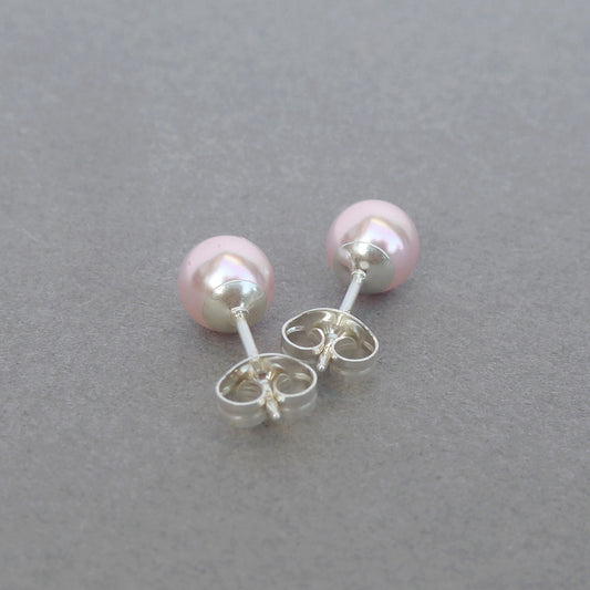 6mm Blush Pink Stud Earrings - Small Baby Pink Glass Pearl Studs