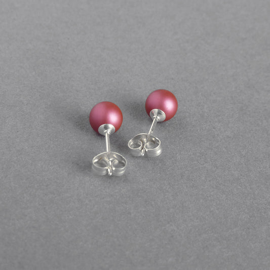 6mm Mulberry Glass Pearl Studs - Raspberry Pink, Everyday Stud Earrings