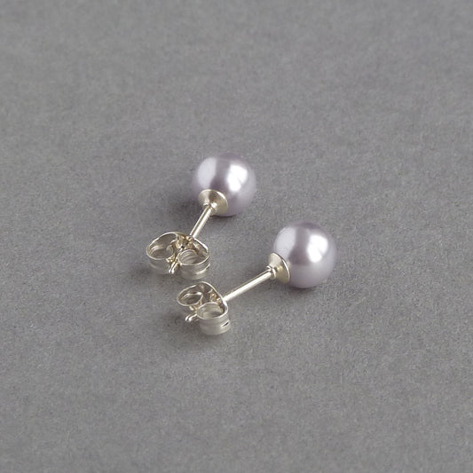 6mm Lavender Pearl Studs - Small, Lilac, Glass Pearl Stud Earrings