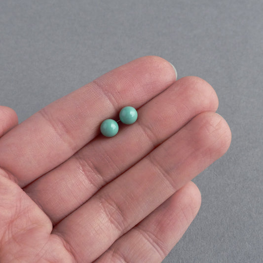 6mm Pale Teal Glass Pearl Studs - Small, Mint Green, Stud Earrings