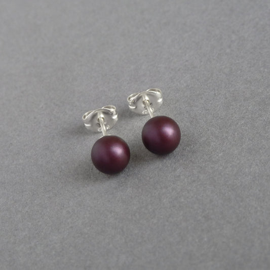 6mm Elderberry Glass Stud Earrings - Small, Round, Plum, Coloured Glass Pearl Studs