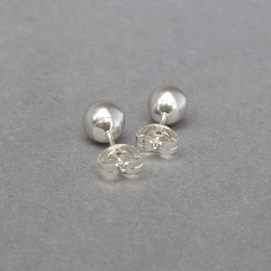 6mm Silver Grey Glass Pearl Studs - Small, Round, Light Grey Stud Earrings