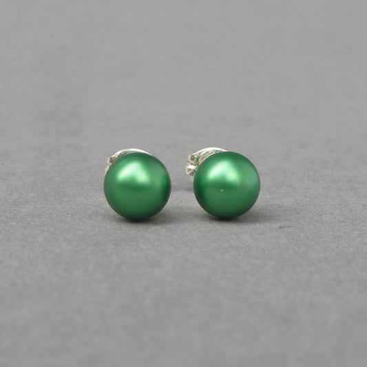 6mm Emerald Green Pearl Stud Earrings - Small, Round, Eden Green, Glass Pearl Studs
