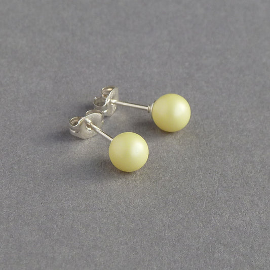 6mm Lemon Stud Earrings - Small, Everyday, Pastel Yellow, Glass Pearl Studs