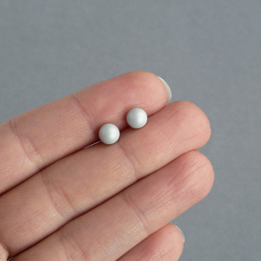 6mm Matt Grey Glass Studs - Small, Round, Light Grey Stud Earrings