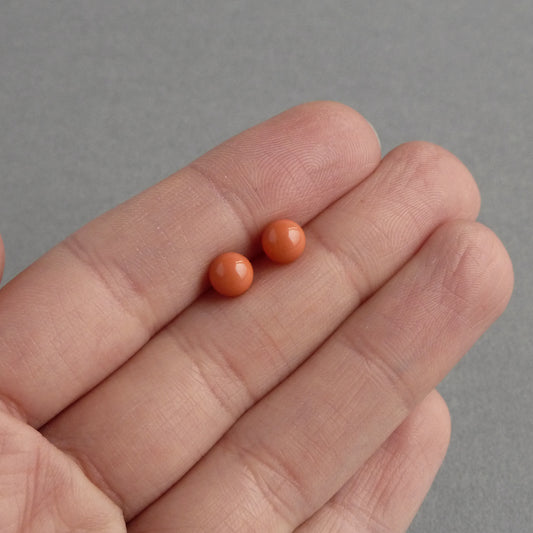6mm Orange Glass Pearl Studs - Small, Colourful, Salmon Peach, Stud Earrings