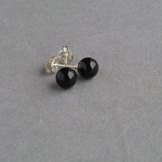 6mm Jet Black Stud Earrings - Glossy, Small, Mystic Black Glass Studs