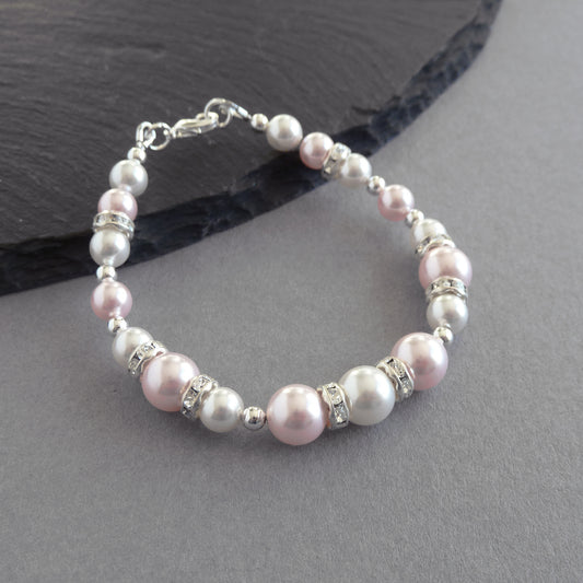 Blush Pink Pearl and Crystal Bracelet - Light Pink Bridesmaids Bracelets