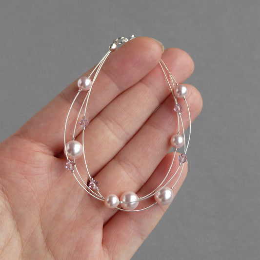Blush Pink Floating Pearl Bracelet - Light Pink Multi-strand Bridesmaids Bracelets