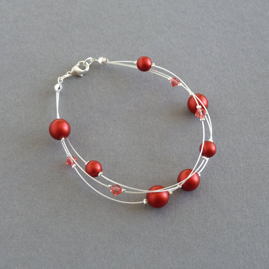 Bright Red Floating Pearl Bracelet - Christmas Red Multi-strand Illusion Bracelets