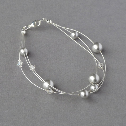 Silver Grey Floating Pearl Bracelet - Light Grey, Multi-strand, Bridesmaids Jewellery