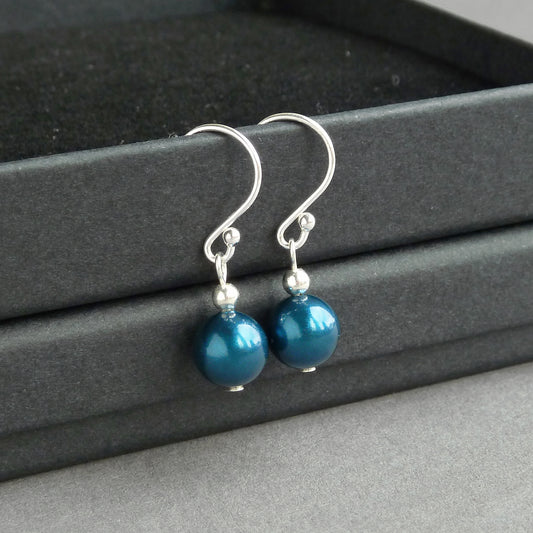 Simple Teal Pearl Drop Earrings - Everyday Petrol Blue Dangle Earrings