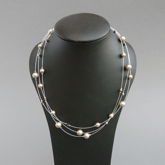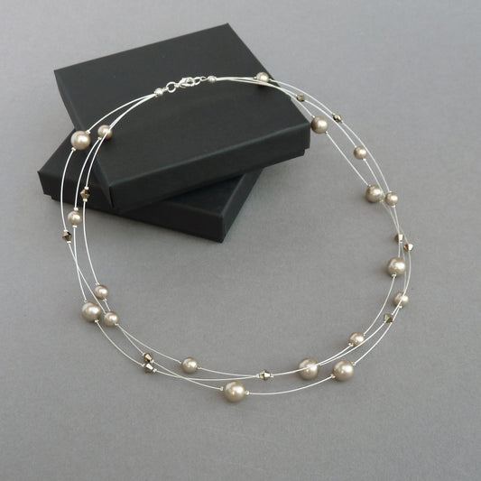 Champagne Floating Pearl Necklace - Taupe Multi-strand Necklaces for Weddings