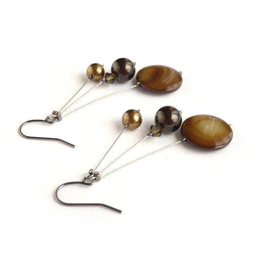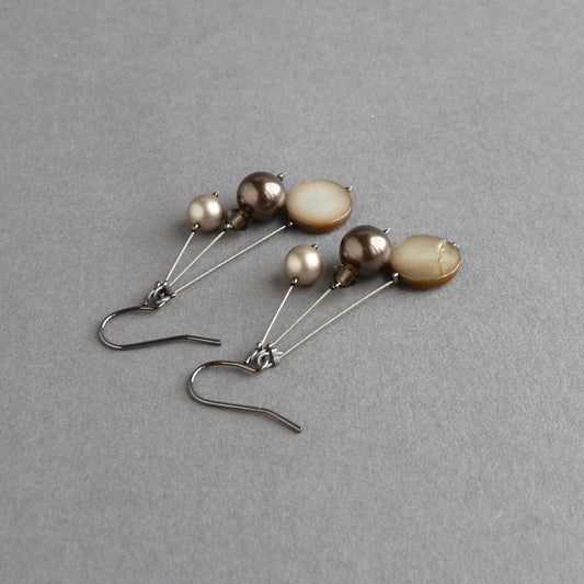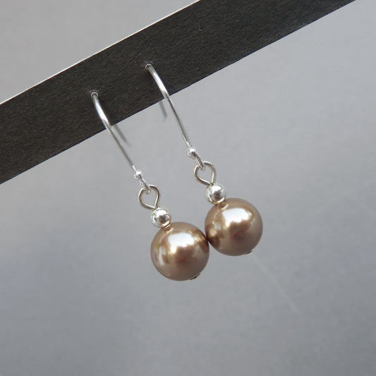 Simple Bronze Pearl Dangle Earrings - Everyday, Light Brown, Drop Earrings