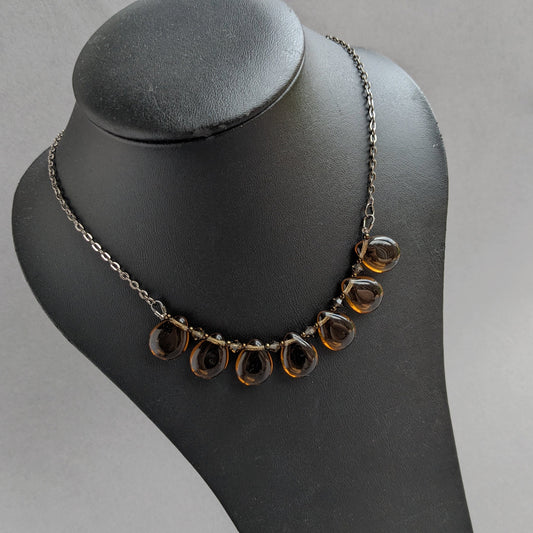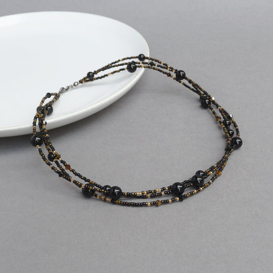 Black Onyx Multi-strand Necklace - Jet Black and Bronze/Gold Twisted Necklaces