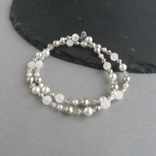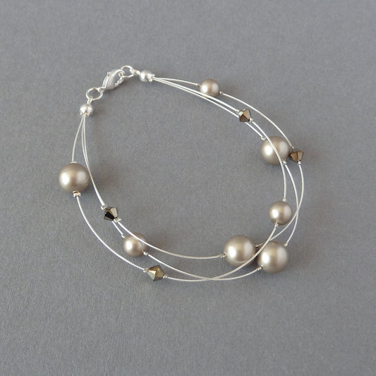 Champagne Floating Pearl Bracelet - Taupe Multi-strand Bridesmaids Bracelets
