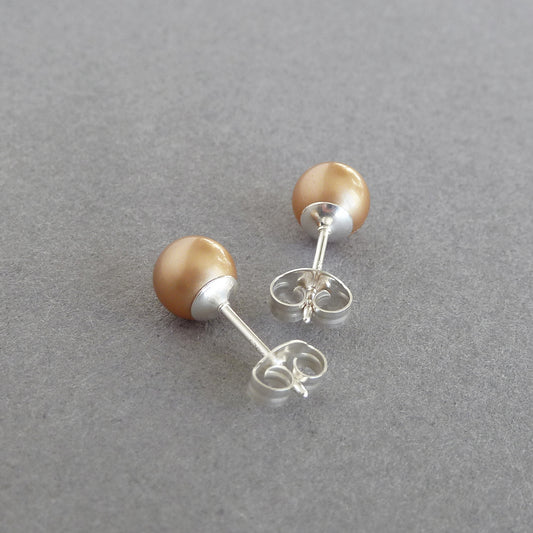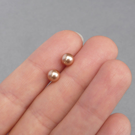 6mm Rose Gold Pearl Stud Earrings - Small, Round, Copper, Glass Pearl Studs