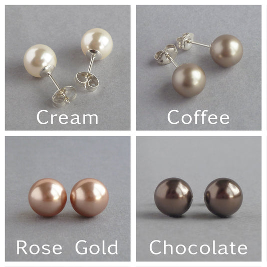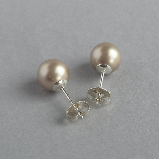 8mm Coffee Pearl Stud Earrings - Everyday, Round, Champagne Studs