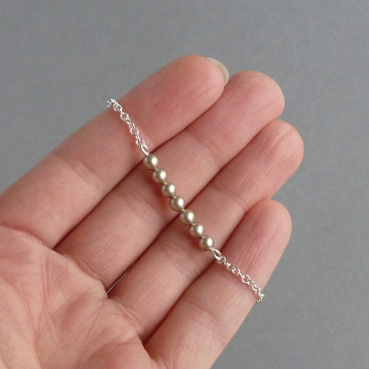 Champagne Pearl Layering Bracelet - Silver Chain and Taupe Bridesmaids Bracelets