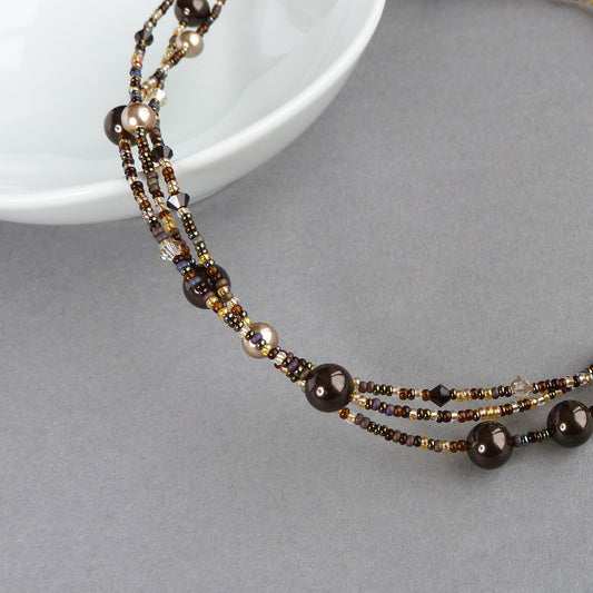 Dark Brown Multi-strand Necklace - Bronze and Gold, Twisted Necklaces