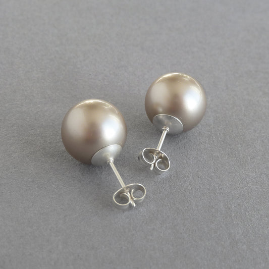 12mm Coffee Glass Pearl Stud Earrings - Chunky Champagne Glass Pearl Studs