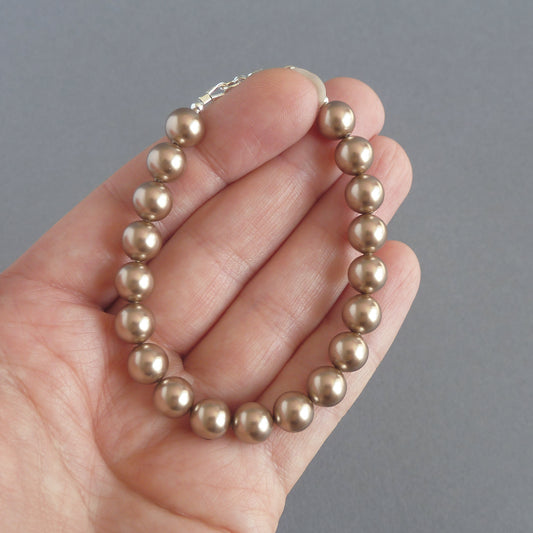 Simple Bronze Pearl Bracelet - Light Brown, Single Strand, Wedding Bracelets