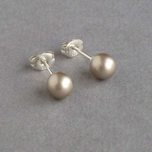 6mm Coffee Glass Pearl Studs - Small, Round, Champagne Stud Earrings
