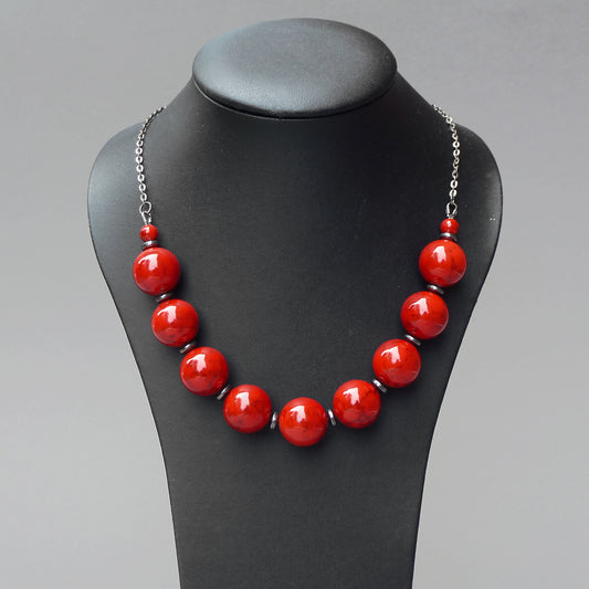 Chunky Bright Red Necklace - Large, Scarlet Bead, Statement Necklaces