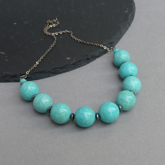 Chunky Sky Blue Beaded Necklace - Turquoise Stone Necklaces