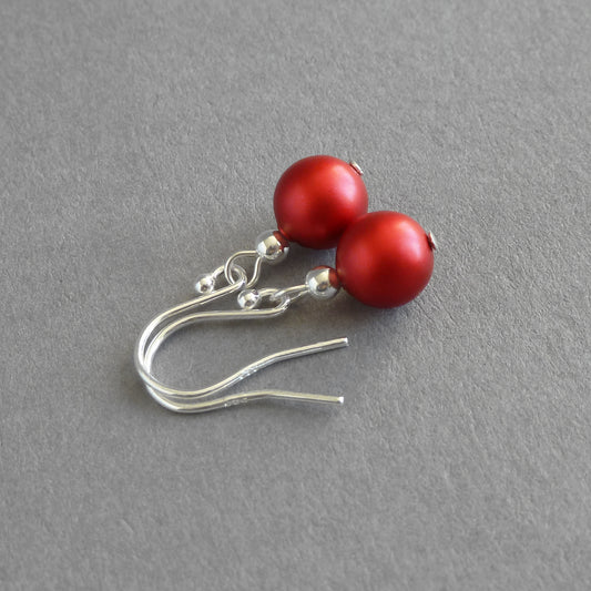 Simple Bright Red Pearl Drop Earrings - Colourful, Christmas Red, Dangle Earrings