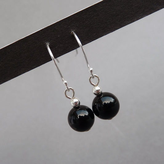 Simple Jet Black Drop Earrings - Sterling Silver and Black Onyx Dangle Earrings