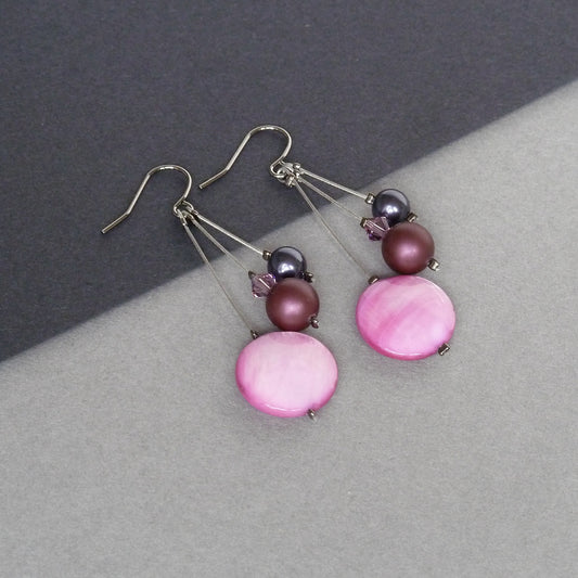 Plum 3 Strand Drop Earrings - Berry Pearl Bridesmaids Gifts