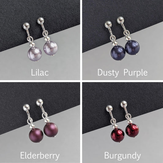 Simple Dark Purple Dangle/Drop Earrings - Dusty Purple Pearl Bridesmaids Gifts
