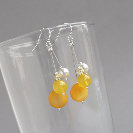 Long Sunflower Yellow Dangle Earrings - Mustard Three Strand Drop Earrings