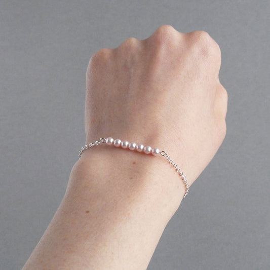 Dusky Pink Pearl Bar Bracelet - Powder Pink Bridesmaids Layering Bracelets