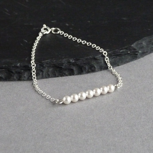 White Pearl Layering Chain Bracelet - Delicate, Dainty, Pearl Bar Bracelets for Weddings