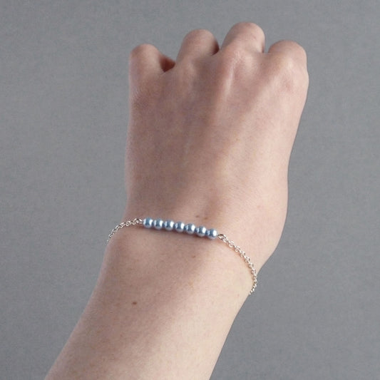Light Blue Glass Pearl Layering Bracelet - Dainty, Pale Blue, Pearl Bar, Chain Bracelets
