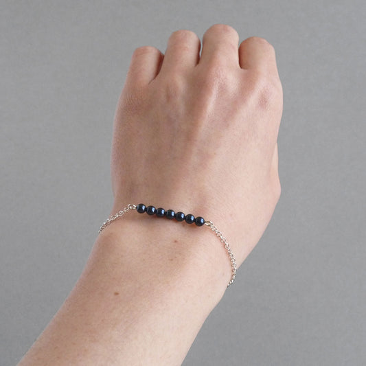 Navy Glass Pearl Layering Bracelet - Dainty, Dark Blue, Pearl Bar, Wedding Bracelets