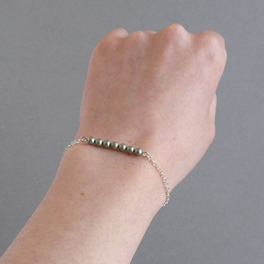 Sage Green Pearl Layering Bracelet - Dainty, Chain and Dusty Green, Pearl Bar Bracelets