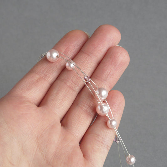 Blush Pink Floating Pearl Necklace - Light Pink Multi-strand Bridesmaids Necklaces