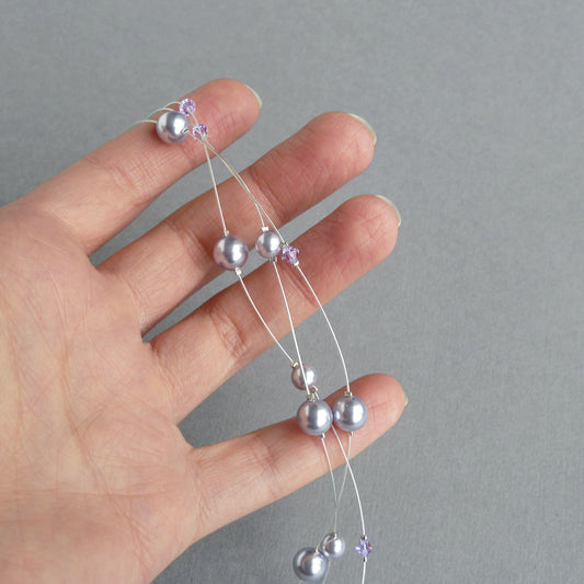 Lavender Floating Pearl Necklace - Pastel Purple, Multi-strand, Wedding Necklaces