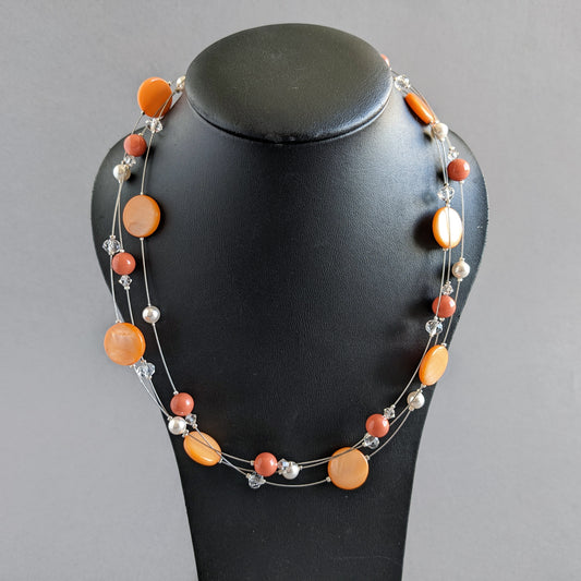 Orange Three Strand Necklace - Pumpkin, Multi-strand, Bridesmaids Necklaces
