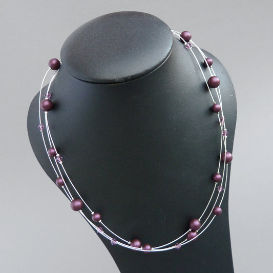 Plum Floating Pearl Necklace - Dainty, Aubergine, Multi-strand Necklaces