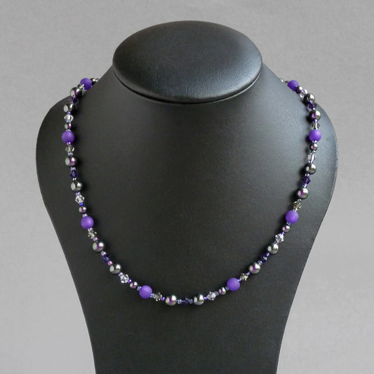 Purple Beaded Necklace - Amethyst Pearl and Crystal Necklaces