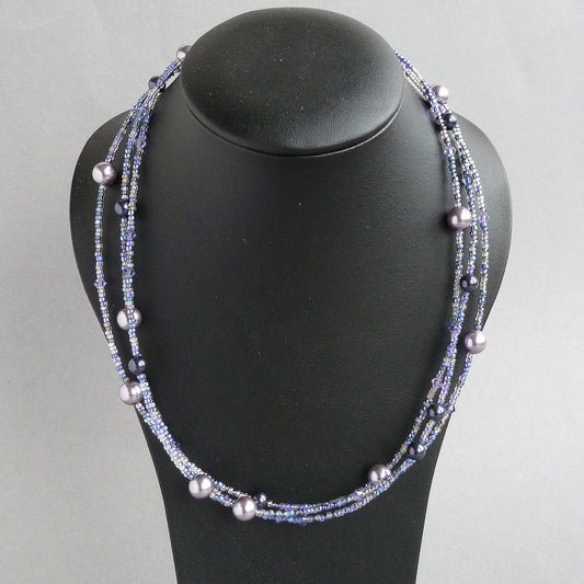 Lilac Multi-strand Pearl Necklace - Dusty Purple, Three Strand, Twisted Necklaces