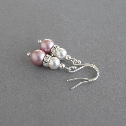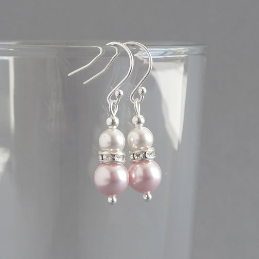 Dusky Pink Pearl and Crystal Drop Earrings - Dainty, Dusty Rose, Dangle Earrings